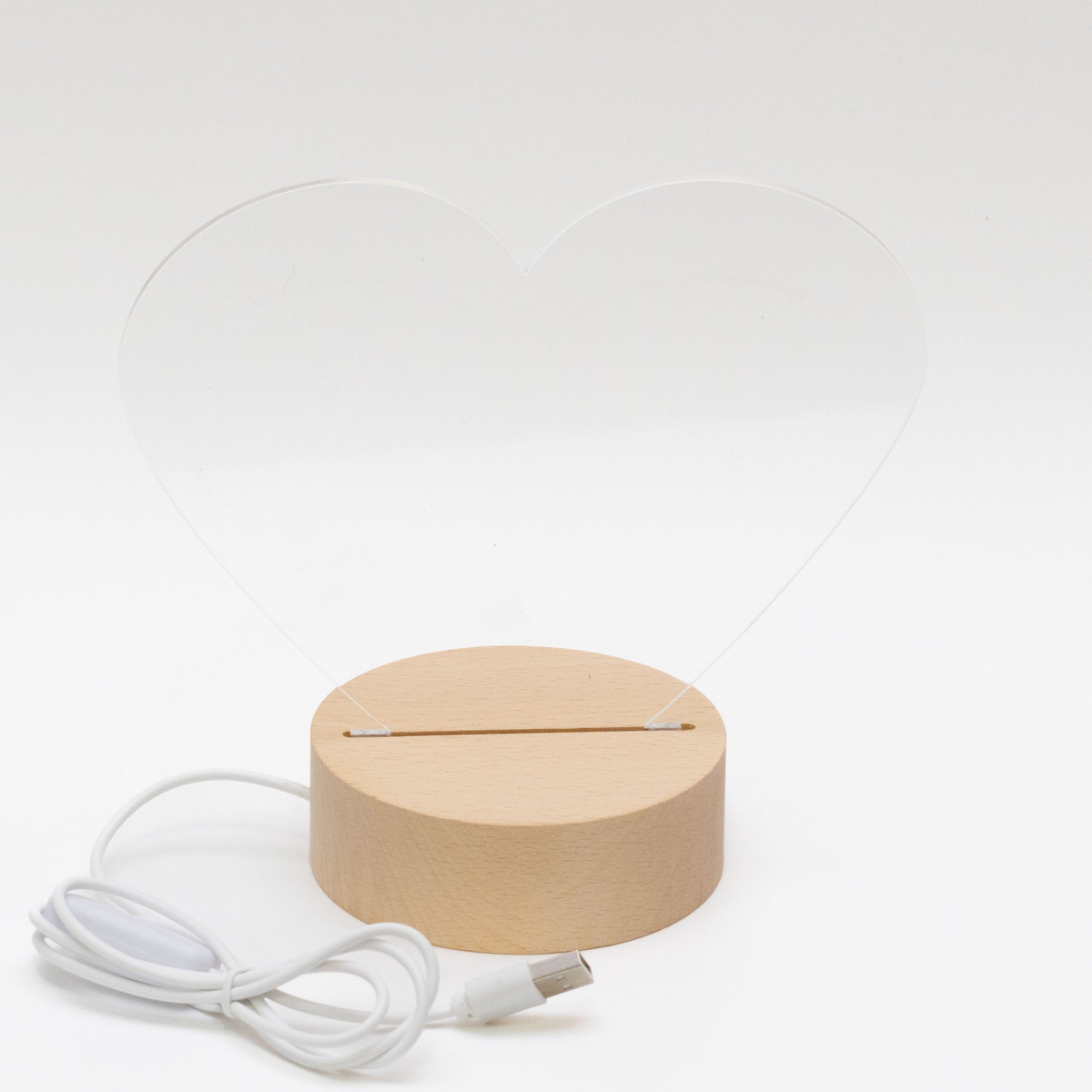 Lampada in plexiglas trasparente forma cuore Lampada in plexiglas trasparente forma cuore 19x14,5 cm. diametro per stampa UV su base con led bianchi presa usb Accedi o registrati per visualizzare, prezzi, varianti e disponibilità.