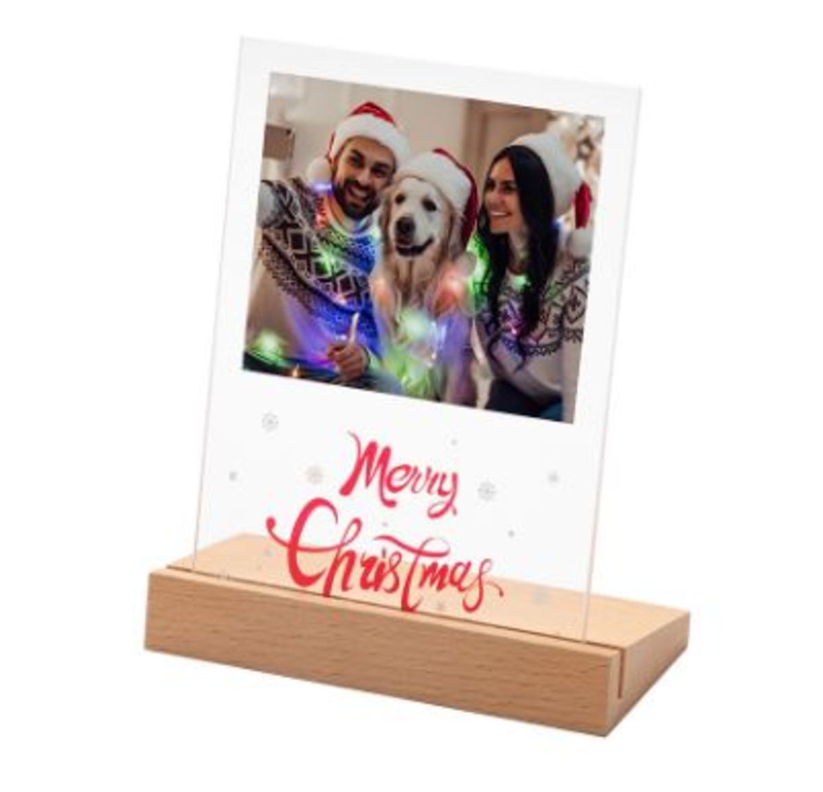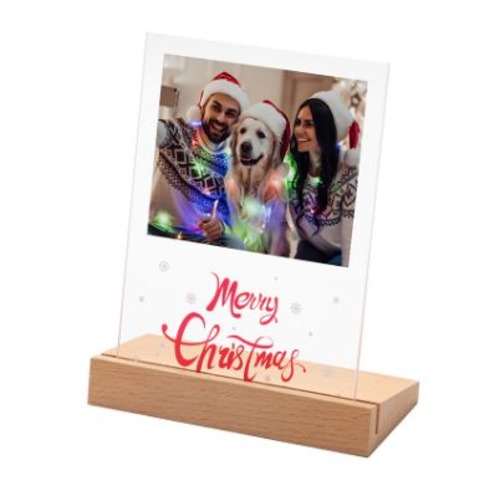 Cornice portafoto rettangolare in vetro per sublimazione con riquadro bianco (Buon Natale, 12,7*17,8 cm) completa di base in legno