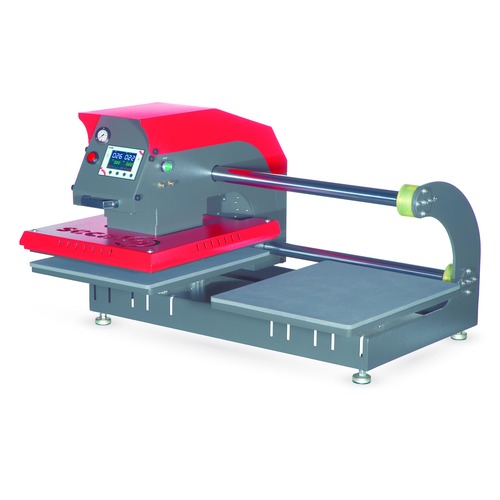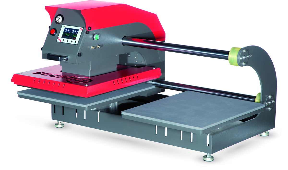 La nuova termopressa TPD7 di Secabo è perfettamente adatta per far fronte a grandi dimensioni e numerosi trasferimenti di tutti i processi di trasferimento standard professionalmente e con precisione in grandi serie. La pressione di questa termopressa con due piastre viene creato da aria compressa, che significa un lavoro semplice con risultati costanti e riproducibili. Con una dimensione di 40 cm x 50cm ciascuno, le due piastre offrono una particolarmente generosa area di lavoro per un comodo allineamento degli oggetti di trasferimento. Poiché la disposizione delle piastre di base è nel formato verticale alla TPD7 in contrasto con il modello precedente, l`esatto posizionamento degli oggetti da trasferire è ancora più semplice. Anche per l`area di lavoro confortevole in ogni piastra di base esposta per aumentare la qualità e la precisione nei trasferimenti. I`elemento di riscaldamento può essere allineato scorrevole orizzontalmente e uniformemente sopra il rispettivo piano di lavoro e la pressione verticalmente incidente permette un trasferimento senza errori di una varietà di materiali senza effetti di spostamento. Il sistema di cambiamento rapido e altre piastre cambiabile (solo in abbinamento con il sistema di cambiamento rapido) sono disponibili separatamente per nuova TPD7.
