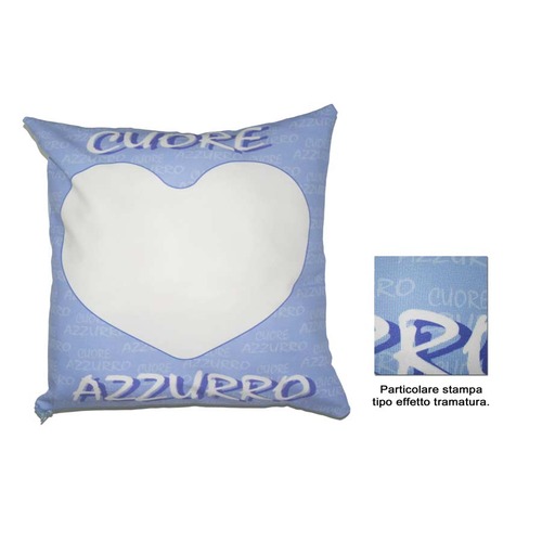 Cuscino Bianco-Azzurro con grafica cuore, 40 x 40 cm, 100% poliestere, completo di imbottitura in sottovuoto.