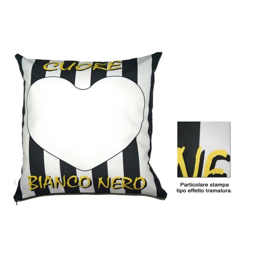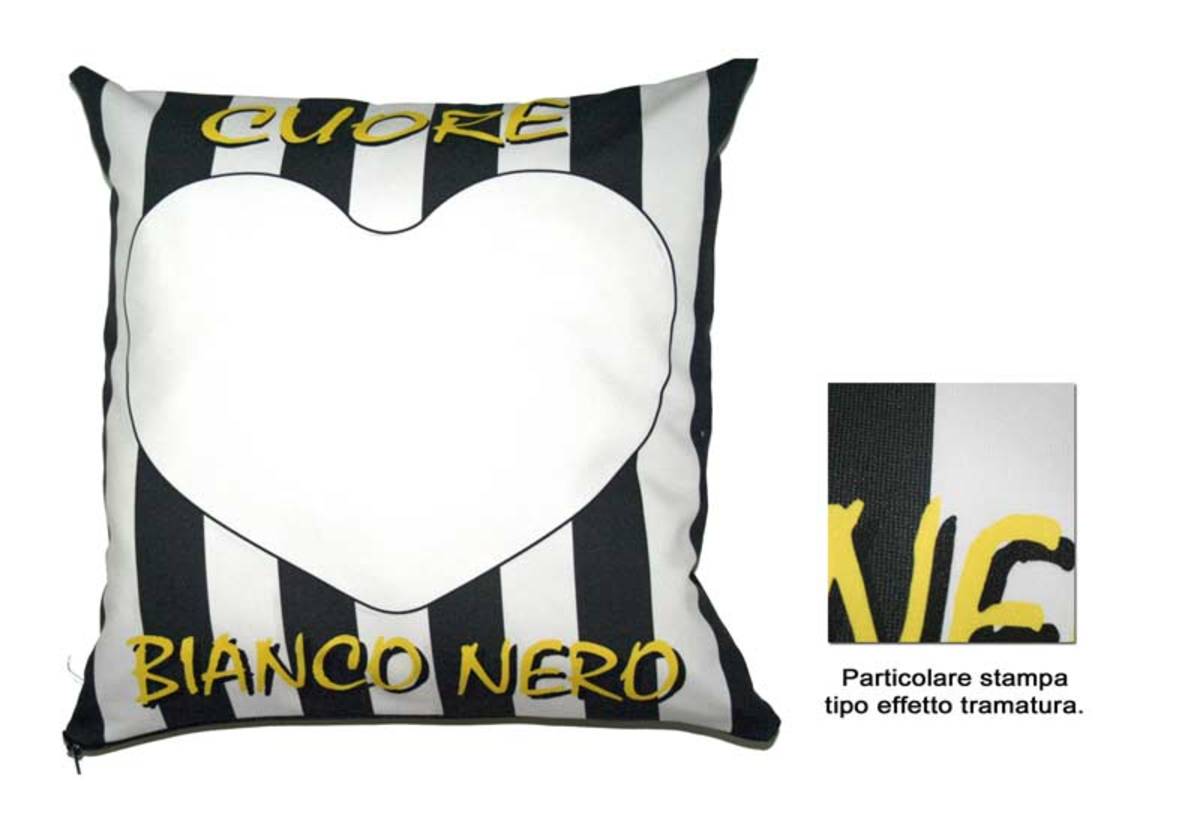 Cuscino Bianco-Nero con grafica cuore, 40 x 40 cm, 100% poliestere, completo di imbottitura in sottovuoto.