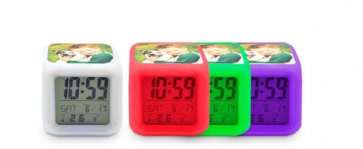Orologio CUBO sveglia personalizzabile con 4 placchette alluminio hd per stampa sublimatica.