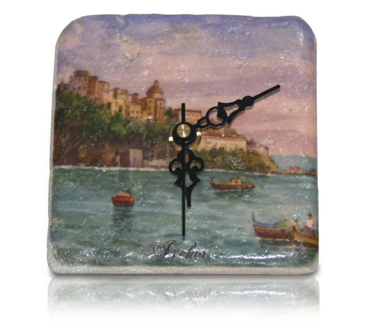 Orologio in marmo personalizzabile a sublimazione completo di meccanica e piedino. Dimensioni 9.5x9.5 cm