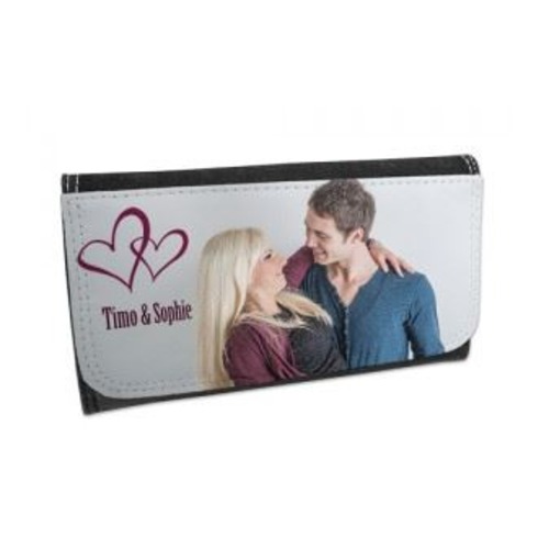 Portafoglio donna con fondo nero e pattina bianca stampabile a sublimazione. Area stampabile 185x100mm