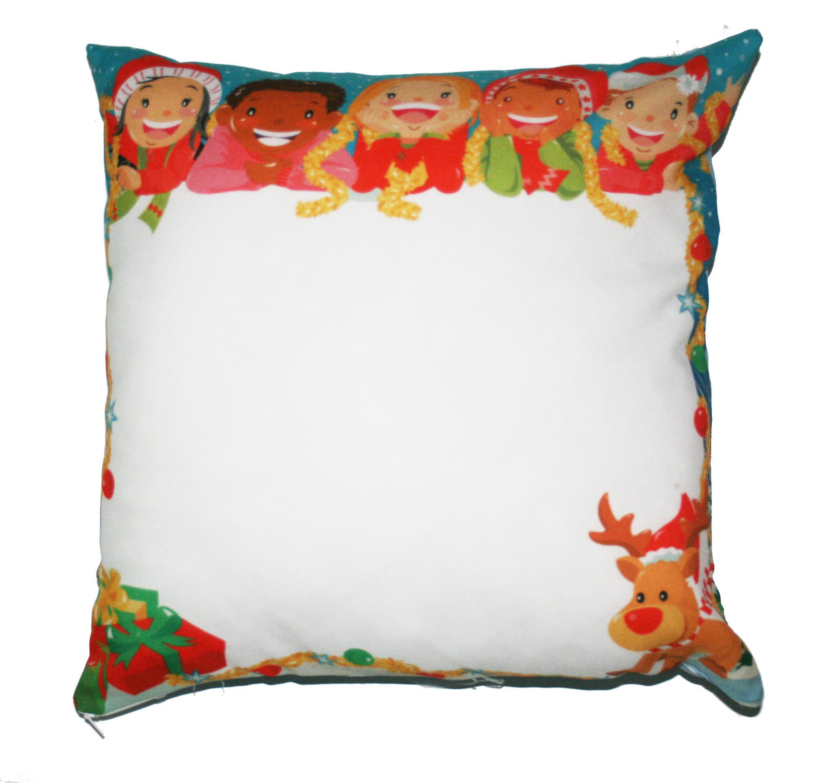 Cuscino 40x40 cm con grafica natalizia con bimbi e riquadro stampabile a sublimazione, completo di imbottitura.