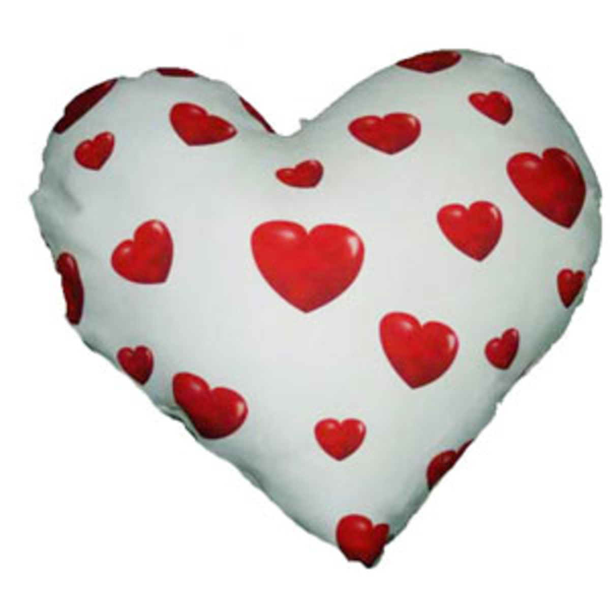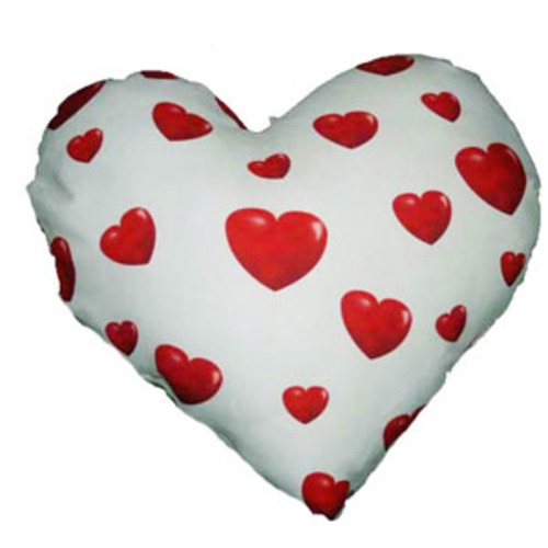 Cuscino forma cuore con cuoricini Cuscino forma cuore bianco/bianco con cuoricini rossi stampati sul retro, 40x40, 100% poliestere, completo di imbottitura. Accedi o registrati per visualizzare, prezzi, varianti e disponibilità.