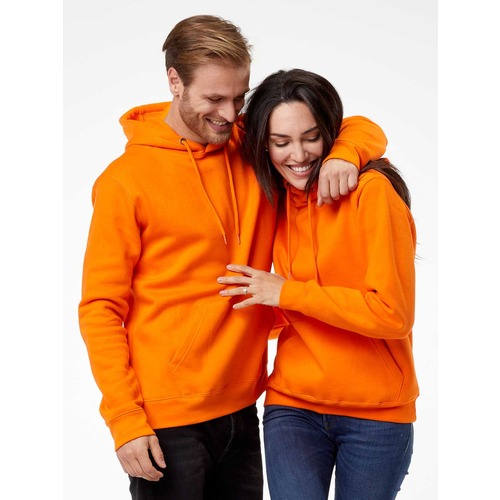 70% cotone, 30% poliestere. Tessuto PST: interno in poliestere ed esterno 100% cotone. Felpa con maniche set-in, unisex, felpata internamente, cappuccio a doppio strato, occhielli in metallo, cordini con punta in metallo, grande tasca a marsupio, struttura con cuciture laterali, fascia in vita e polsini in costina. Etichetta strappabile.